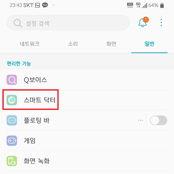 일반탭을 눌러주세요. 그 다음 일반탭에 있는 스마트 닥터를 눌러주세요.