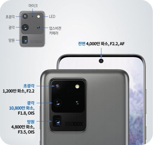 S20울트라는 무려 10배 광학줌에 100배 스페이스줌(디지털줌)이 가능하다고 해요.